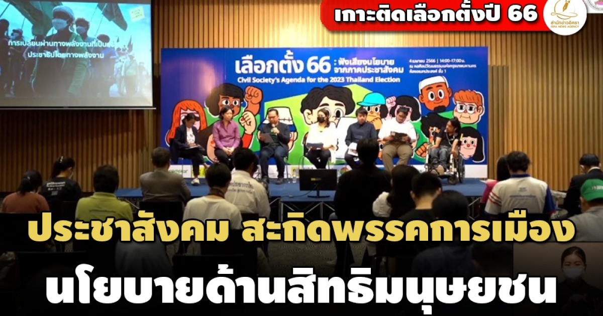 สำนักข่าวอิศรา (www.isranews.org) รายงานว่า วันที่ 4 เมษายน 2566 ภาคประชาสังคมจัดงานแถลงข่าว “เลือกตั้ง 2566 : ฟังเสียงนโยบายภาคประชาสังคม (Civil Society's Agenda for the 2023 Thailand Election)” ที่หอศิลปวัฒนธรรมแห่งกรุงเทพมหานคร เพื่อนำเสนอข้อเสนอแนะด้านสิทธิมนุษยชนหลากหลายประเด็น ครอบคลุมทั้งสิทธิพลเมือง สิทธิทางการเมือง สิทธิทางเศรษฐกิจ สังคม วัฒนธรรม สิ่งแวดล้อม แรงงานข้ามชาติ ผู้ลี้ภัย คนพิการ เด็ก สตรี ผู้ที่มีความหลากหลายทางเพศ สิทธิมนุษยชนและการพัฒนา รวมทั้งกลุ่มชาติพันธุ์ในประเทศไทย ต่อตัวแทนพรรคการเมืองและสาธารณชน