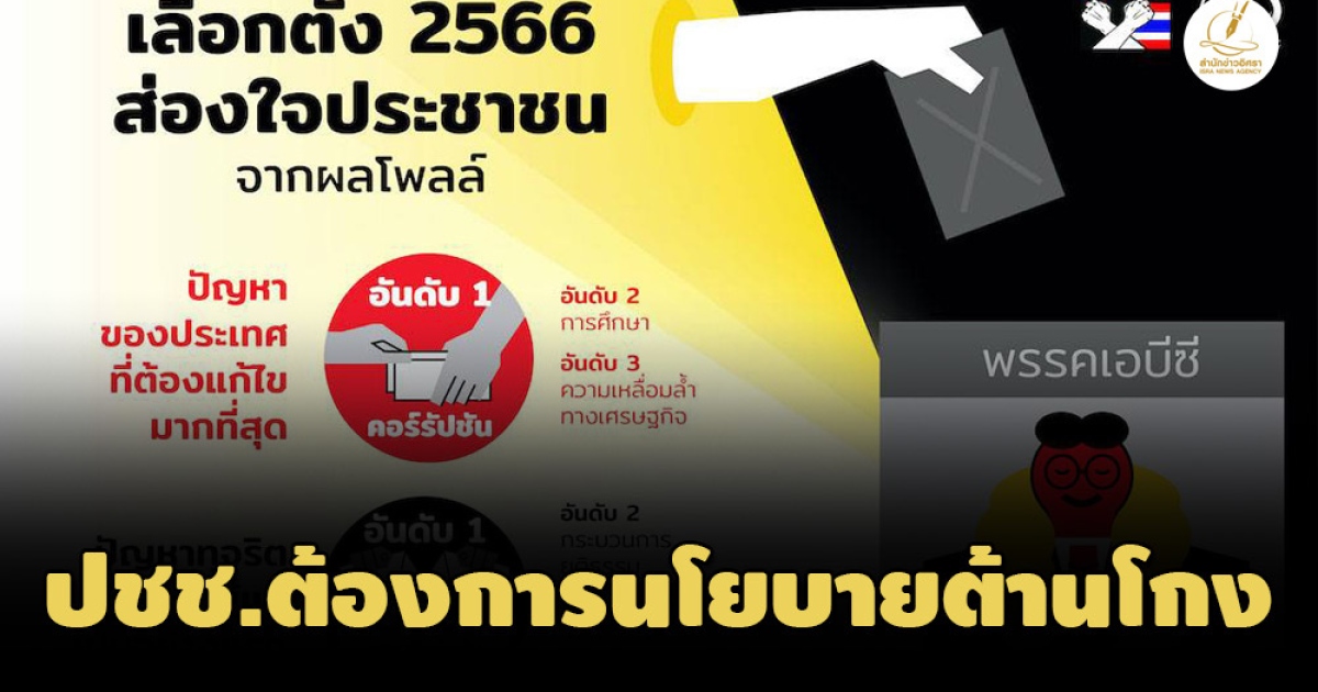 ACT เปิดผลโพลพบนโยบายต่อต้านคอร์รัปชัน มีผลสูงสุดต่อการตัดสินใจลงคะแนนเสียงของประชาชน เรียกร้องพรรค-นักการเมืองประกาศนโยบายที่ทำได้จริง