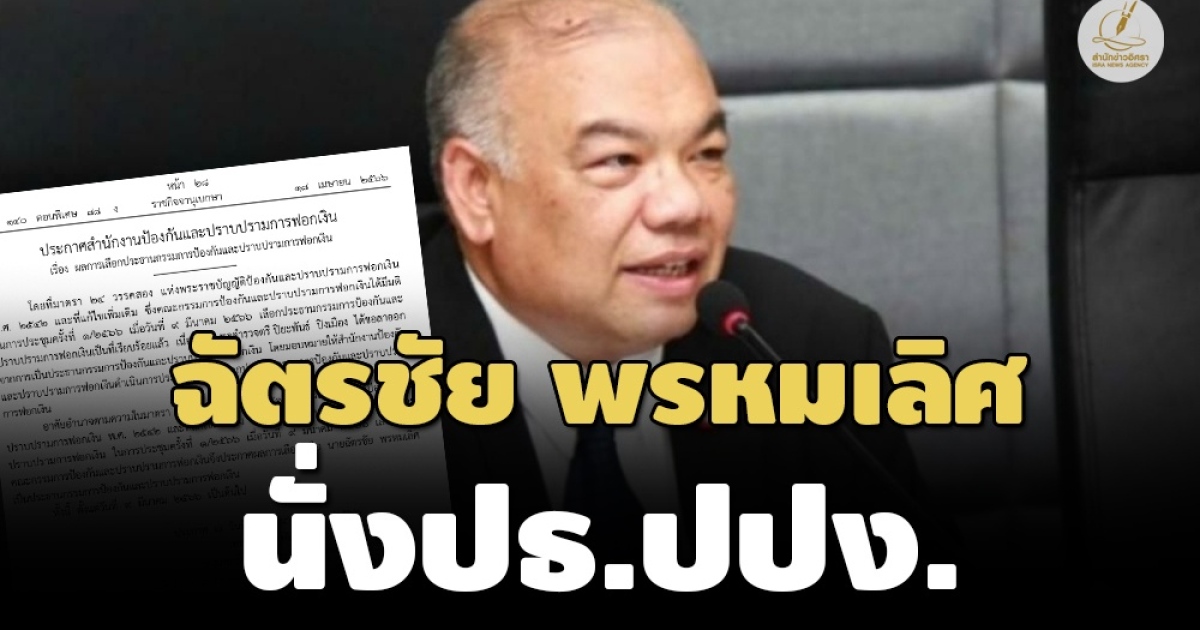 ราชกิจจานุเบกษาเผยแพร่ ประกาศเลือก ‘ฉัตรชัย พรหมเลิศ’ เป็นประธาน ปปง.คนใหม่ มีผลตั้งแต่วันที่ 9 มี.ค. 66 เป็นต้นไป