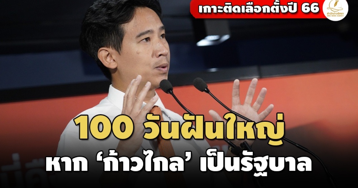 สำนักข่าวอิศรา (www.isranews.org) รายงานว่า วันที่ 27 เมษายน 2566 นายพิธา ลิ้มเจริญรัตน์ หัวหน้าพรรคก้าวไกล แถลงแผนงานหากพรรคก้าวไกลได้รับเลือกเป็นรัฐบาล โดยได้วางกรอบเวลาในการขับเคลื่อนนโยบายหลักที่สามารถผลักดันได้ใน 100 วันแรก 1 ปีแรก และสมัยแรก ภายใต้กรอบ ‘การเมืองดี ปากท้องดี มีอนาคต’
