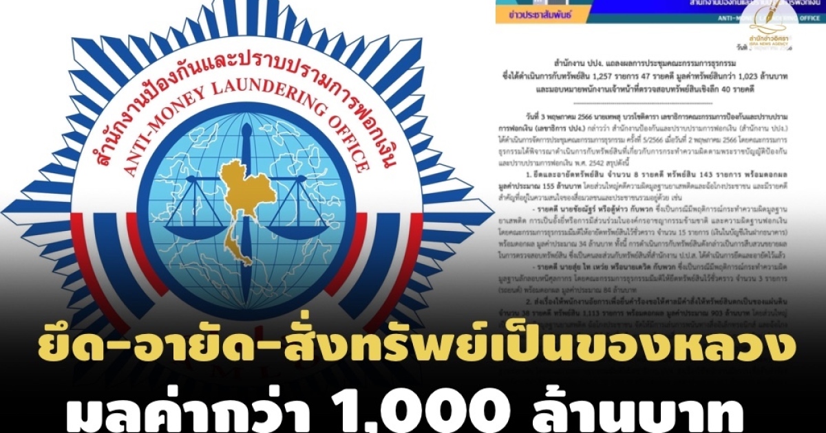 สำนักข่าวอิศรา (www.isranews.org) รายงานว่า เมื่อวันที่ 3 พ.ค. 2566 นายเทพสุ บวรโชติดารา เลขาธิการคณะกรรมการป้องกันและปราบปรามการฟอกเงิน (เลขาธิการ ปปง.) กล่าวว่า สำนักงานป้องกันและปราบปรามการฟอกเงิน (สำนักงาน ปปง.) ได้ดำเนินการจัดการประชุมคณะกรรมการธุรกรรม ครั้งที่ 5/2566 เมื่อวันที่ 2 พ.ค. 2566 โดยคณะกรรมการธุรกรรมได้พิจารณาดำเนินการกับทรัพย์สินที่เกี่ยวกับการกระทำความผิดตามพระราชบัญญัติป้องกันและปราบปรามการฟอกเงิน พ.ศ. 2542 สรุปดังนี้