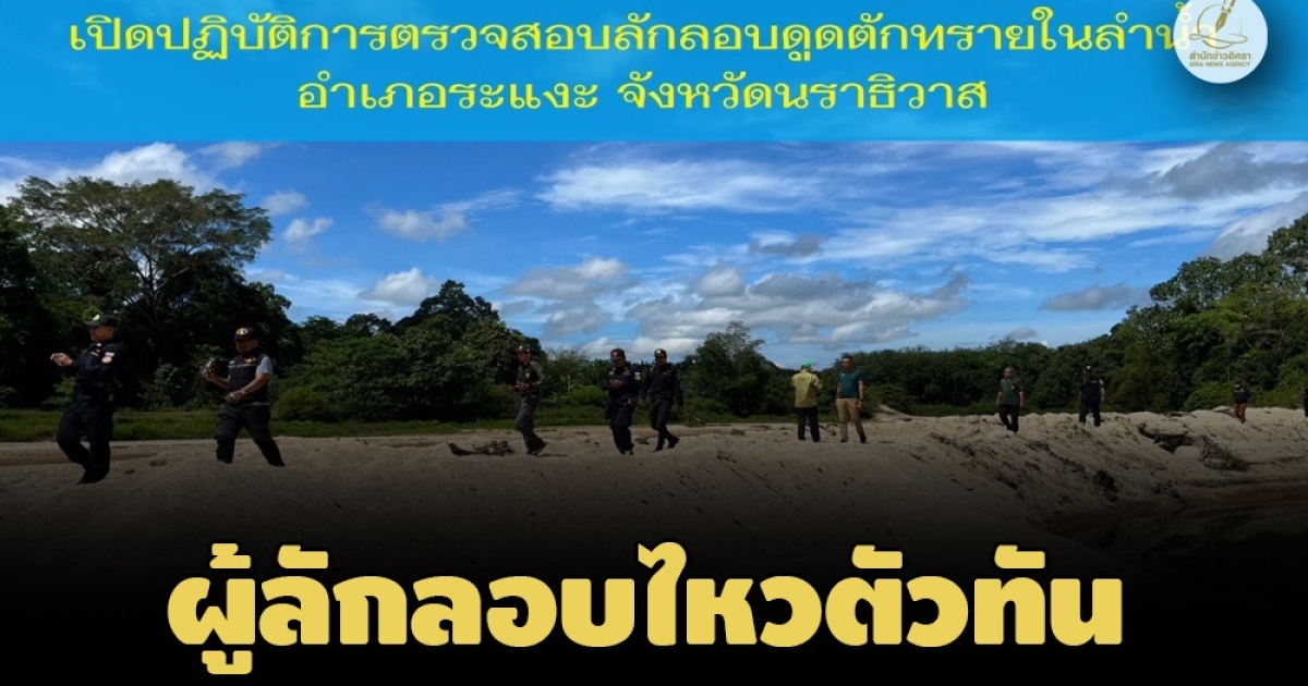 ป.ป.ช.นราธิวาสสนธิกำลังป่าไม้ ชมรมสตองลงพื้นที่สอบคลองคันหยงมัส เฝ้าระวังเหตุดูดทราย 6 จุด พบมีเหตุลักลอบจริง แต่ผู้กระทำผิดไหวตัวทัน ขนย้ายอุปกรณ์หลบหนีแล้ว