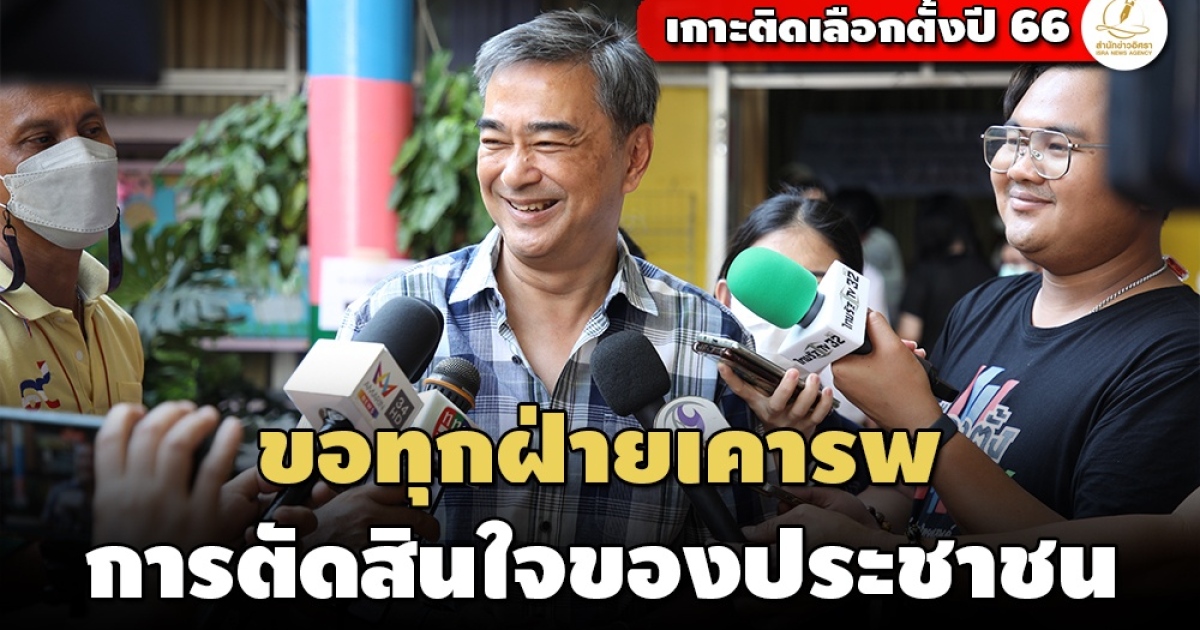 นายอภิสิทธิ์ ให้สัมภาษณ์ว่า เท่าที่ตนเองดูจัดการเลือกตั้งในช่วงเช้านี้ ก็เห็นว่ามีความเรียบร้อยดี ทั้งนี้ หลังจากตนเองไปใช้สิทธิ์เลือกตั้งแล้ว ไม่ได้ไปไหน แต่จะรอติดตามผลการเลือกตั้งอยู่ที่บ้าน อย่างไรก็ตาม ตนเองอยากให้ประชาชนออกมาใช้สิทธิเลือกตั้ง เพื่อยืนยันความเป็นเจ้าของประเทศ สำหรับการเลือกตั้งครั้งนี้ถือเป็นการเปิดโอกาสให้ประชาชนได้กำหนดอนาคตของประเทศ โดยหวังว่าทุกอย่างในการเลือกตั้งครั้งนี้จะเป็นไปด้วยความเรียบร้อย มีความสุจริตและเที่ยงธรรมที่สุด ขณะเดียวกัน ขอให้คณะกรรมการการเลือกตั้ง (กกต.) เข้มข้นในเรื่องการจัดการเลือกตั้งอย่างโปร่งใส และขอให้ทุกฝ่ายเคารพการตัดสินใจของประชาชน