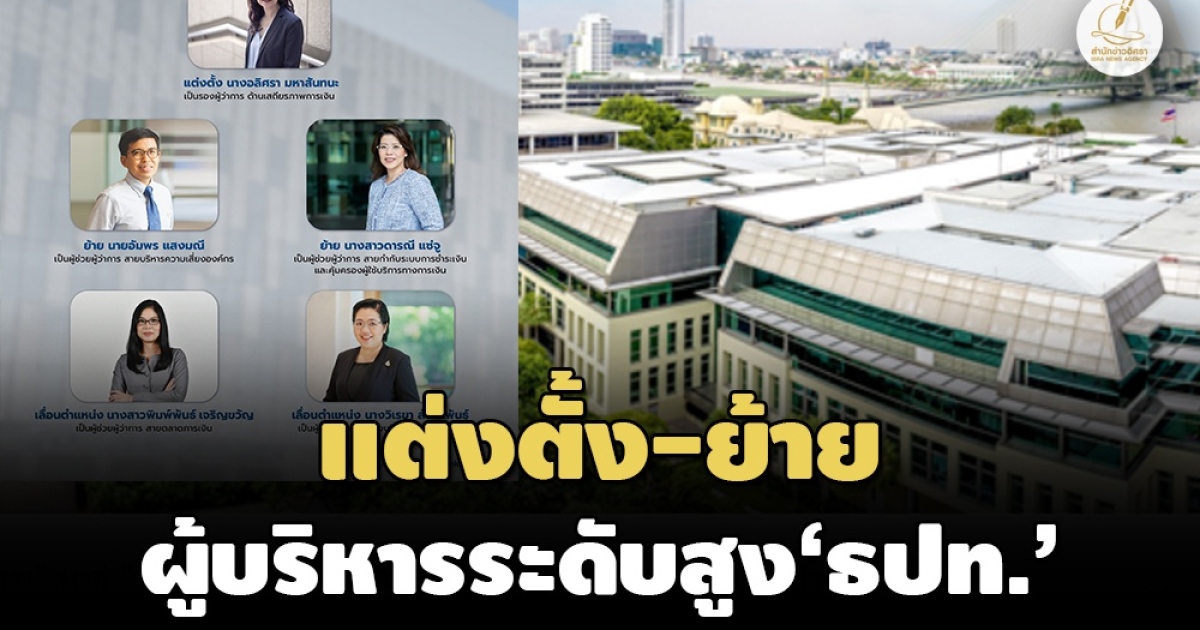 ‘บอร์ด ธปท.’ แต่งตั้ง-ย้าย-เลื่อนตำแหน่ง ผู้บริหารระดับสูง ‘แบงก์ชาติ’ 5 ราย ‘อลิศรา มหาสันทนะ’ นั่งตำแหน่งรองผู้ว่าการฯด้านเสถียรภาพการเงิน