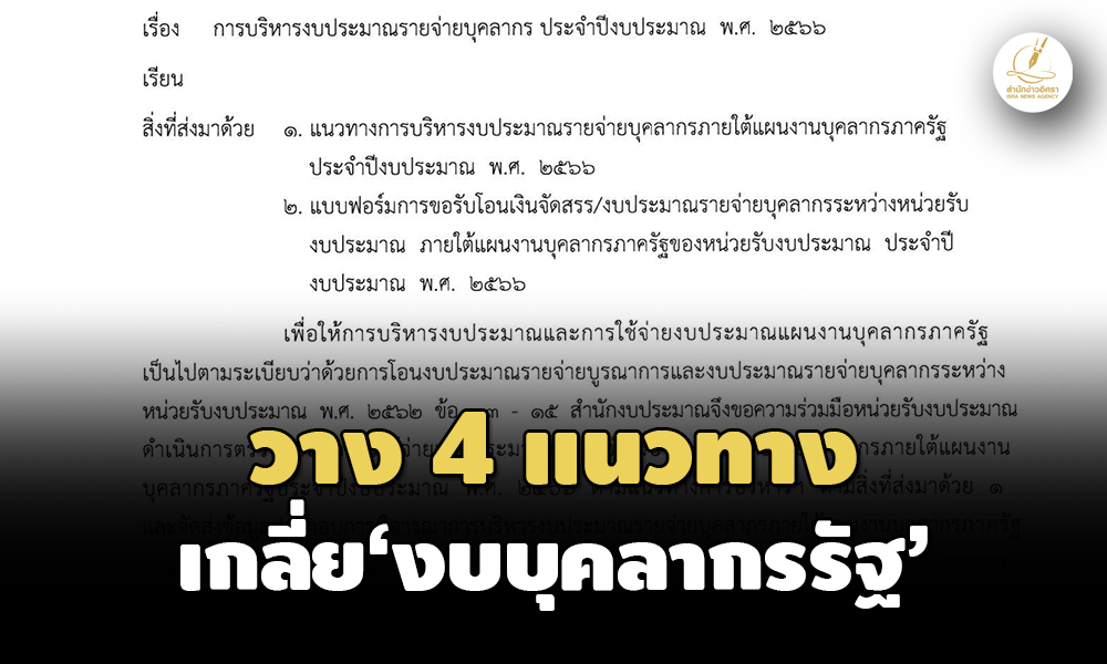 สำนักข่าวอิศรา (www.isranews.org) รายงานว่า เมื่อเร็วๆนี้ นายเฉลิมพล เพ็ญสูตร ผู้อำนวยการสำนักงบประมาณ ได้ทำหนังสือด่วนที่สุดที่ นร 0718/ ว 109 ลงวันที่ 19 พ.ค.2566 แจ้งไปยังส่วนราชการต่างๆ โดยขอความร่วมมือให้หน่วยรับงบประมาณ ตรวจสอบผลการใช้จ่ายและประมาณการใช้จ่ายงบประมาณรายจ่ายบุคลากรภายใต้แผนงานบุคลากรภาครัฐ ประจำปีงบประมาณ พ.ศ.2566 ตามแนวทางการบริหารงบประมาณรายจ่ายบุคลากรภายใต้แผนงานบุคลากรภาครัฐ ประจำปีงบประมาณ พ.ศ.2566 และให้จัดส่งข้อมูลประกอบการพิจารณาการบริหารงบประมาณรายจ่ายบุคลากรภายใต้แผนงานบุคลากรภาครัฐ มายังสำนักงบประมาณภายในวันที่ 30 มิ.ย.2566