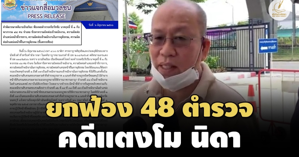 สำนักข่าวอิศรา (www.isranews.org) รายงานว่า วันที่ 6 มิถุนายน 2566 ที่ศาลอาญาคดีทุจริตและประพฤติมิชอบกลาง ถนนเลียบทางรถไฟ ศาลนัดอ่านคำสั่งหรือคำพิพากษาชั้นตรวจคำฟ้อง คดีดำ อท.208/2565 ที่ นายอัจฉริยะ เรืองรัตนพงษ์ ประธานชมรมช่วยเหลือเหยื่ออาชญากรรม เป็นโจทก์ยื่นฟ้องพ.ต.อ.ภูมิธัช โฆษิตพานิชพงศ์ รองผู้บังคับการตำรวจภูธรจังหวัดนนทบุรี(รอง ผบก.ภ.จว.นนทบุรี ) และพวกรวม 48 คน ซึ่งเป็นตำรวจชุดคลี่คลายการเสียชีวิตของแตงโม หรือ นางสาวภัทรธิดา พัชรวีรพงษ์ เป็นจำเลยในความผิดต่อตำแหน่งหน้าที่ตามประมวลกฎหมายอาญา มาตรา157 เป็นเจ้าพนักงานปฏิบัติหน้าที่โดยมิชอบ, มาตรา173 ฐานแจ้งความเท็จ และ มาตรา 200 ฐานกลั่นแกล้งผู้อื่นให้ได้รับโทษทางอาญา กรณีการคลี่คลายคดีการเสียชีวิตของแตงโม อดีตนักแสดงสาวเสียชีวิตตกเรือสปีดโบ๊ทในแม่น้ำเจ้าพระยา เมื่อคืนวันที่ 24 ก.พ.65
