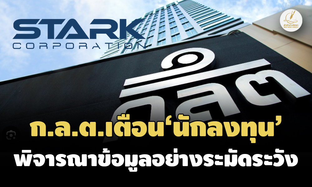 เมื่อวันที่ 17 มิ.ย. สำนักงานคณะกรรมการกำกับหลักทรัพย์และตลาดหลักทรัพย์ (ก.ล.ต.) ออกเอกสารข่าว โดยขอให้ผู้ลงทุนพิจารณาข้อมูลเกี่ยวกับงบการเงินและผลการตรวจสอบเป็นกรณีพิเศษ (special audit) ของบริษัท สตาร์ค คอร์ปอเรชั่น จำกัด (มหาชน) (STARK) ด้วยความระมัดระวัง เพื่อนำไปประกอบการตัดสินใจลงทุน โดยมีเนื้อหาว่า