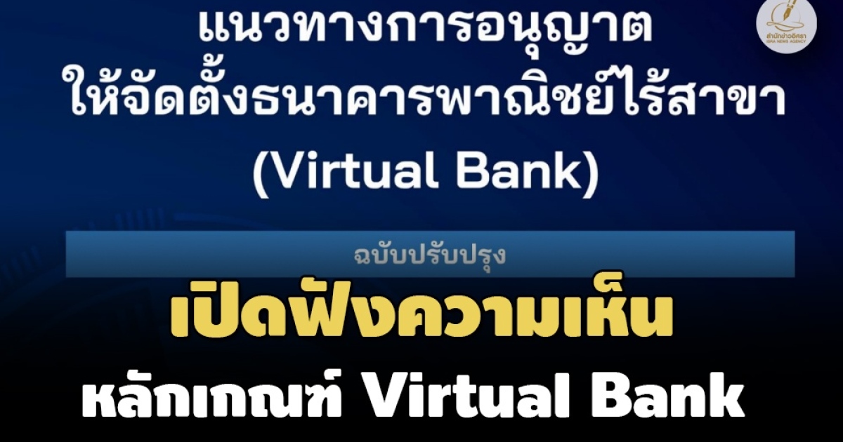 เมื่อวันที่ 19 มิ.ย. ธนาคารแห่งประเทศประเทศไทย (ธปท.) เปิดรับฟังความเห็นต่อแนวทางการอนุญาตให้จัดตั้งธนาคารพาณิชย์ไร้สาขา (Virtual Bank) ฉบับปรับปรุง โดยระบุว่า ตามที่ ธปท. ได้เปิดรับฟังความเห็นต่อแนวทางการอนุญาตให้จัดตั้ง Virtual Bank ระหว่างวันที่ 12 ม.ค.-12 ก.พ.2566 นั้น ธปท. ได้รับความเห็น และข้อเสนอแนะที่เป็นประโยชน์จากภาคส่วนต่างๆ ทั้งภาครัฐ ภาคประชาชน และผู้ประกอบธุรกิจทั้งในไทยและต่างประเทศ