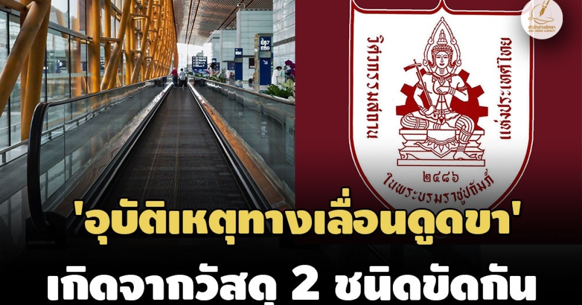 วสท. ชี้แจงกรณีอุบัติเหตุทางเลื่อนสนามบินดอนเมืองดูดขาผู้โดยสาร เกิดจากวัสดุ 2 ชนิดขัดกันจนง้างแผ่นทางเลื่อนเป็นช่องว่างขนาดใหญ่