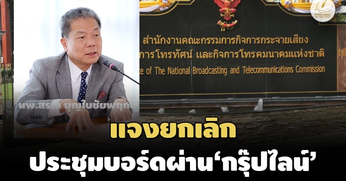 เลขานุการ 'ปธ.กสทช.' แจงเหตุยกเลิกประชุมบอร์ด หลัง 'นพ.สรณ' ป่วย-มีปวดท้องเฉียบพลัน ระบุยกเลิกประชุมบอร์ดผ่าน 'กรุ๊ปไลน์' เป็นไปคำพิพากษาศาลปกครองสูงสุด