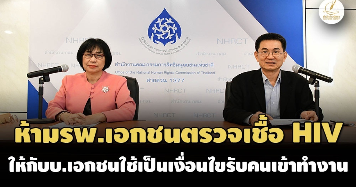 กสม.แจ้งสมาคมโรงพยาบาลเอกชนห้ามตรวจเชื้อเอชไอวีให้บริษัทเอกชนใช้เป็นเงื่อนไขรับคนทำงาน-เผยประชาชนไม่ทราบข้อมูล-ไม่มีส่วนร่วมในการบริหารจัดการน้ำอย่างทั่วถึงในโครงการบริหารจัดการน้ำ โขง เลย ชี มูลฯ