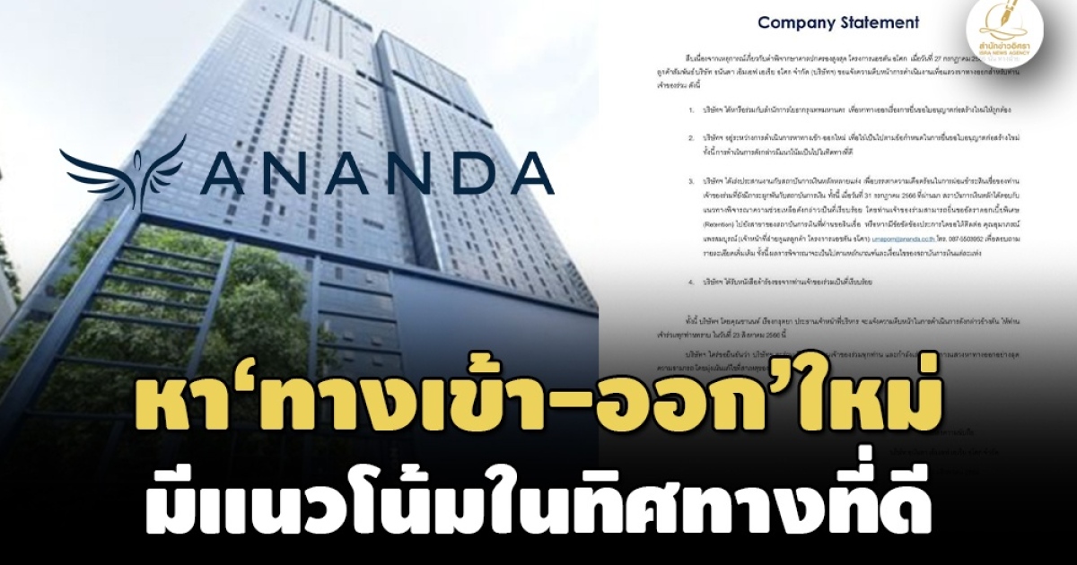 “บริษัทฯ ใคร่ขอยืนยันว่า บริษัทฯ จะร่วมเสียงข้างท่านเจ้าของร่วมทุกท่าน และกำลังเร่งดำเนินการแสวงหาทางออกอย่างสุดความสามารถ โดยมุ่งเน้นแก้ไขที่สาเหตุของปัญหา”แถลงการณ์ของบริษัท อนันดา เอ็มเอฟ เอเชีย อโศก จำกัด ลงวันที่ 14 ส.ค.2566 ระบุ
