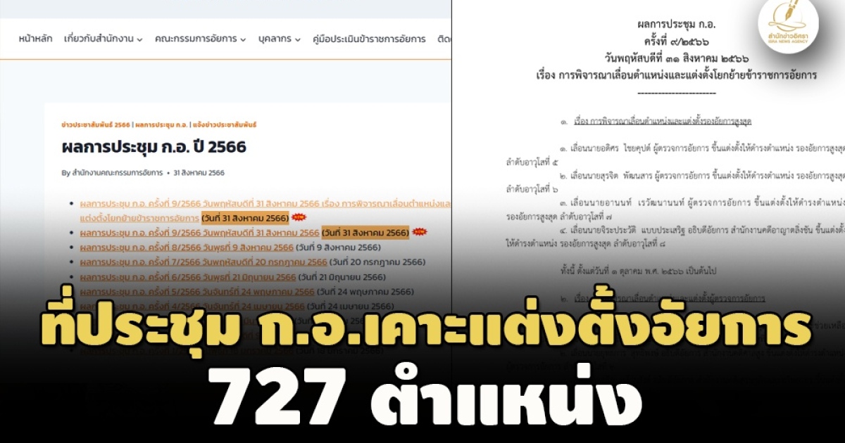 ที่ประชุม ก.อ.เคาะแต่งตั้ง ข้าราชการ 727 ตำแหน่งทั่วประเทศ รวมรอง อสส. 4 ตำแหน่ง ผู้ตรวจอัยการ 9 ตำแหน่ง อธิบดีอัยการ 53 ตำแหน่ง ให้มีผลตั้งแต่ 1 ต.ค.