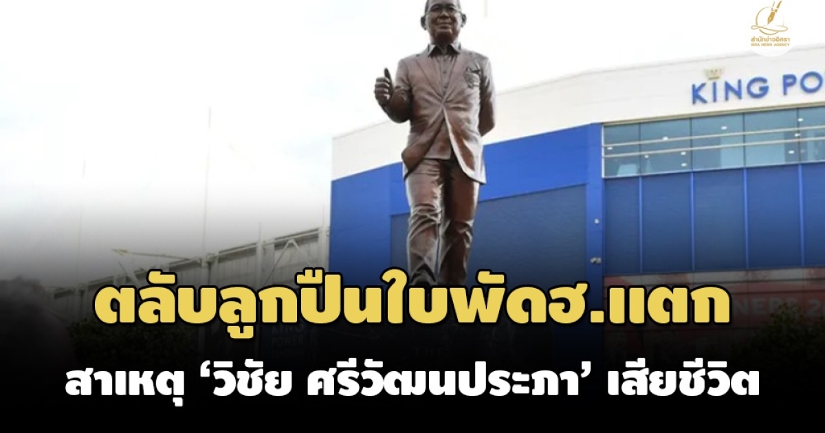 สำนักข่าวอิศรา (www.isranews.org) รายงานว่า วันที่ 6 กันยายน 2566 เว็บไซต์บีบีซีไทย (BBC Thai) รายงานว่า สำนักงานสอบสวนอุบัติเหตุทางอากาศของประเทศอังกฤษ (Air Accident Investigation Branch – AAIB) เปิดเผยรายงานอุบัติเหตุทางอากาศเกี่ยวกับอุบัติเหตุเฮลิคอปเตอร์ตกที่สนามฟุตบอลของสโมสรฟุตบอลเลสเตอร์ ซิตี้เมื่อเดือน ต.ค. 2561 โดยระบุว่าสาเหตุมาจากความผิดพลาดของบริษัทผู้ผลิตเฮลิคอปเตอร์ โดยเหตุการณ์นี้ทำให้มีผู้โดยสารเสียชีวิต 5 ราย หนึ่งในนั้นคือ นายวิชัย ศรีวัฒนประภา เจ้าของสโมสร