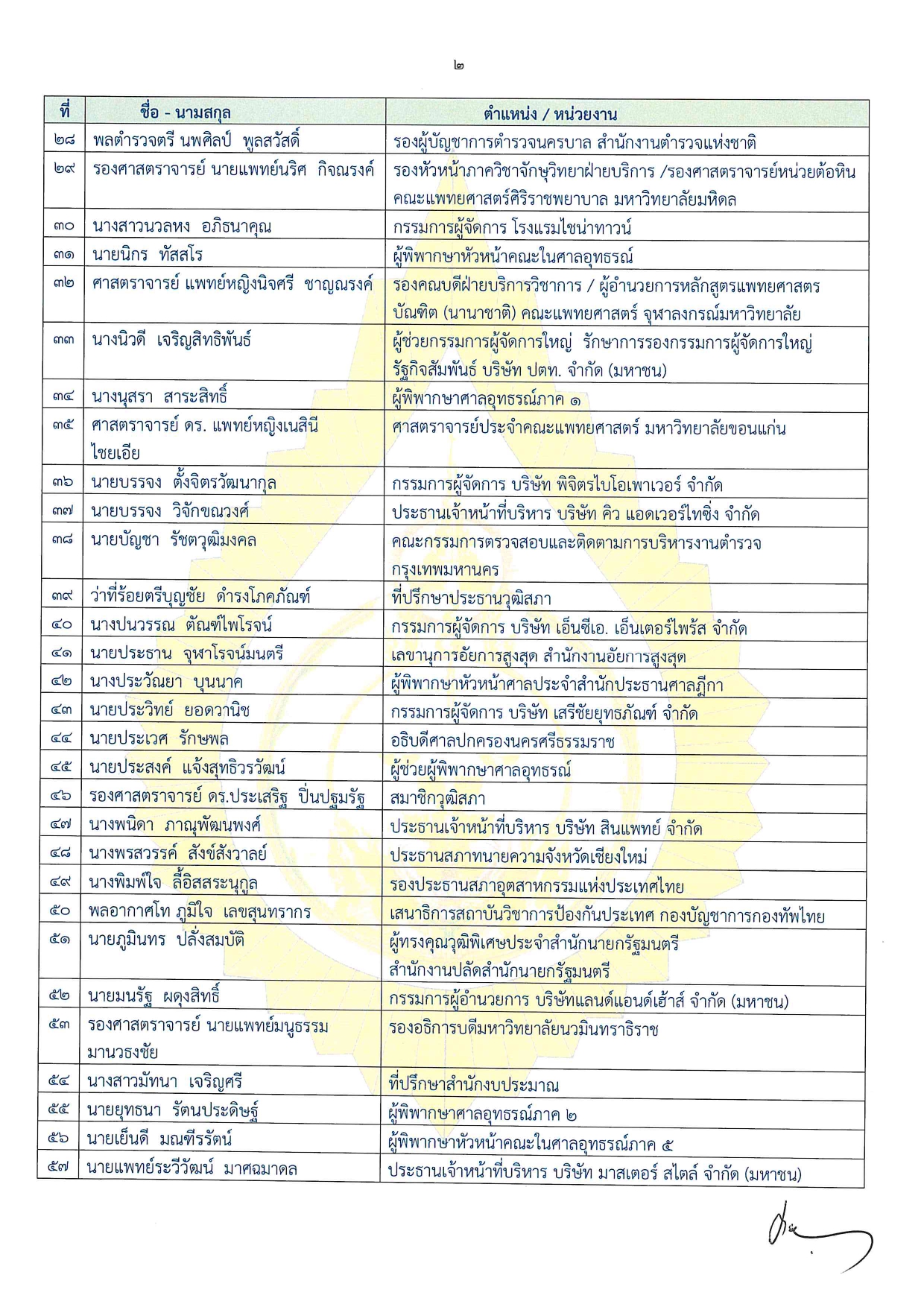 6.นางพิมพ์ใจ ลี้อิสสระนุกูล รองประธานสภาอุตสาหกรรมแห่งประเทศไทย 7.นายสุระ คณิตทวีกุล ประธานเจ้าหน้าที่บริหาร บริษัท คอมเซเว่น จํากัด (มหาชน) 8.นายประวิทย์ ยอดวานิช กรรมการผู้จัดการ บริษัท เสรีชัยยุทธภัณฑ์ จํากัด 9.นางพนิดา ภาณุพัฒนพงศ์ ประธานเจ้าหน้าที่บริหาร บริษัท สินแพทย์ จํากัด 10.นางโสมนัส นิลเจียรสกุล ประธานกรรมการ บริษัท สํานักงานจักรพงษ์ทนายความ จํากัด (ดูประกาศฉบับและรายชื่อฉบับเต็มเพิ่มเติม)