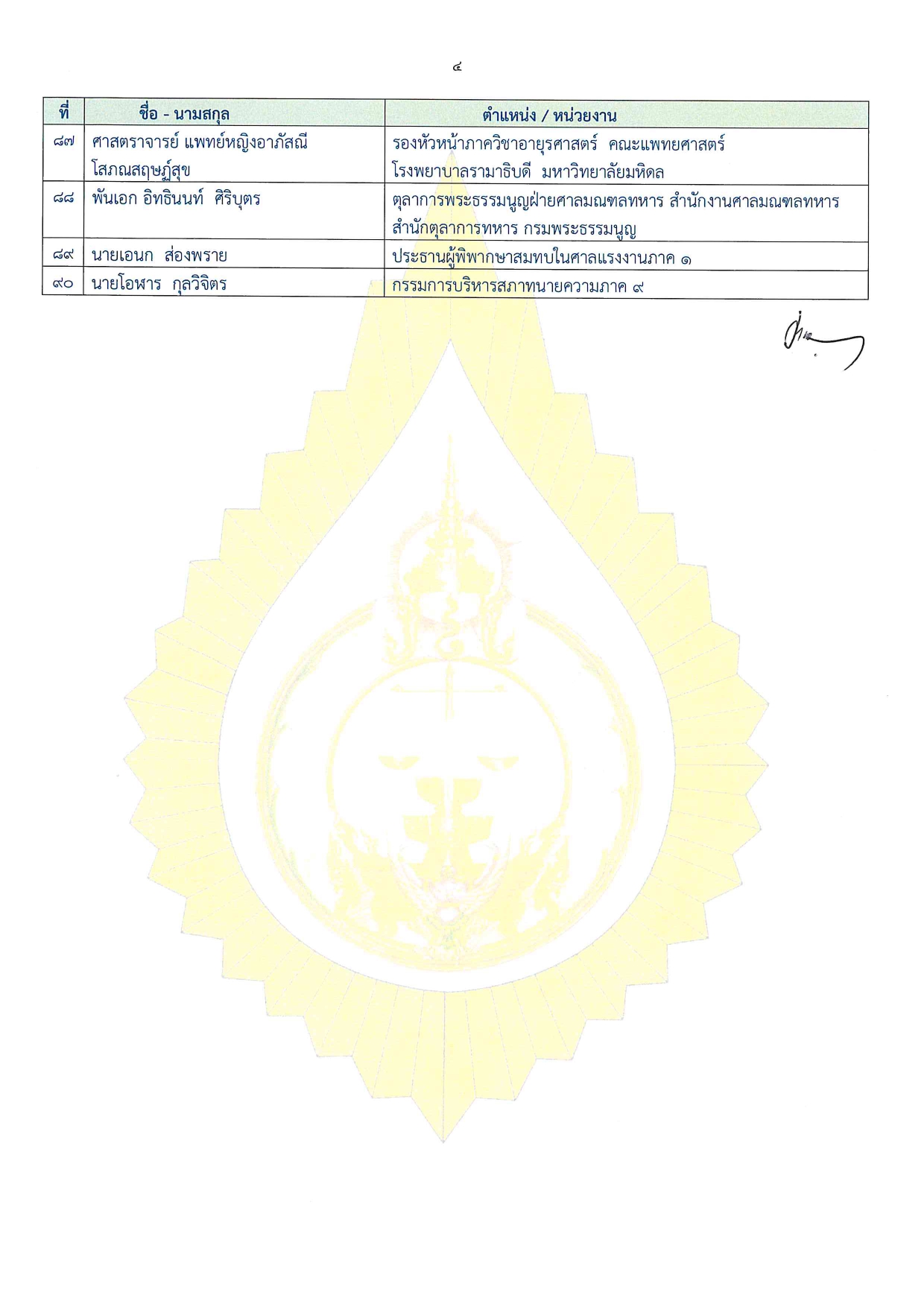 6.นายธนาคม ลิ้มภักดี ผู้พิพากษาศาลฎีกา 7.นายประเวศ รักษพล อธิบดีศาลปกครองนครศรีธรรมราช 8.พลอากาศโท ภูมิใจ เลขสุนทรากร 9.เสนาธิการสถาบันวิชาการป้องกันประเทศ กองบัญชาการกองทัพไทย 10.นายสราวุธ ปิตุเตชะ เลขาธิการสํานักงานอัยการสูงสุด