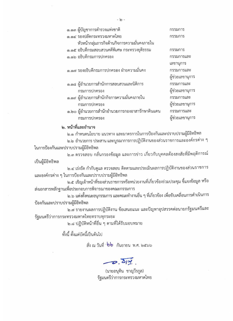 ‘อนทุิน’ เซ็นตั้งคณะกรรมการปราบปรามผู้มีอิทธิพล นั่งประธานเอง ‘ชาดา’ เป็นรองประธาน