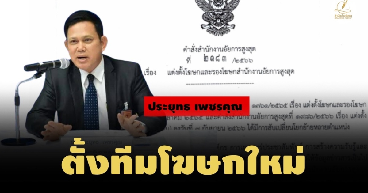 อสส.เซ็นตั้งทีมโฆษกอัยการชุดใหม่ 'ประยุทธ เพชรคุณ' นั่งตำแหน่งโฆษก 'วัชรินทร์ ภาณุรัตน์' อัยการเอฟบีไอนั่งรอง เบอร์1