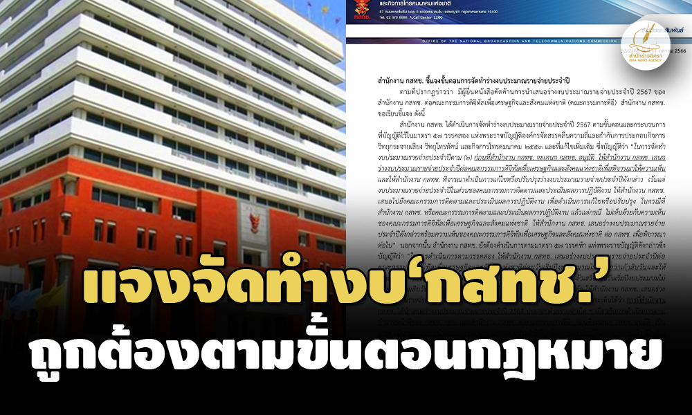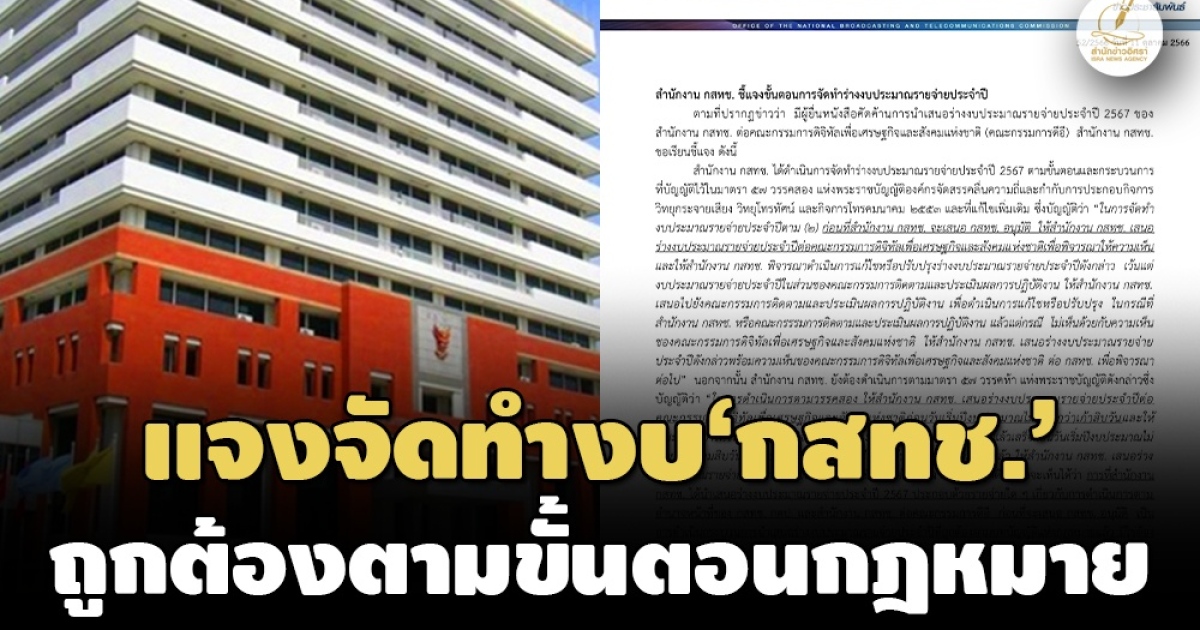สำนักข่าวอิศรา (www.isranews.org) รายงานว่า เมื่อวันที่ 11 ต.ค. สำนักงานคณะกรรมการกิจการกระจายเสียง กิจการโทรทัศน์ และกิจการโทรคมนาคมแห่งชาติ (สำนักงาน กสทช.) เผยแพร่เอกสารข่าว โดยมีเนื้อหาว่า ตามที่ปรากฏข่าวว่า มีผู้ยื่นหนังสือคัดค้านการนำเสนอร่างงบประมาณรายจ่ายประจำปี 2567 ของสำนักงาน กสทช. ต่อคณะกรรมการดิจิทัลเพื่อเศรษฐกิจและสังคมแห่งชาติ (คณะกรรมการดีอี) สำนักงาน กสทช. ขอเรียนชี้แจง ดังนี้