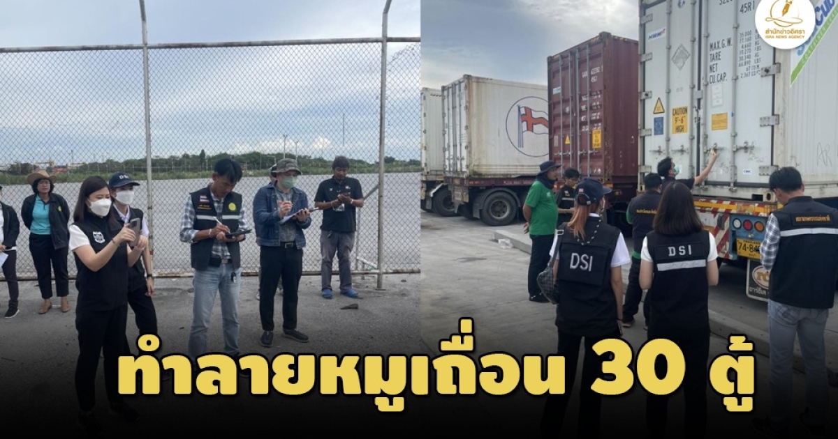 DSI สั่งทำลายซากหมูเถื่อน 30 ตู้ท่าเรือแหลมฉบัง เผย 6 ผู้ต้องหาถูกออกหมายจับติดต่อขอมอบตัวแล้ว ผลสอบซักทอดพบขาใหญ่ราชบุรี-ขรก.มีเอี่ยวลอบนำเข้า