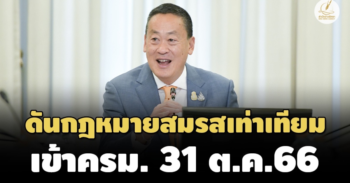 สำนักข่าวอิศรา (www.isranews.org) รายงานว่า วันที่ 26 ตุลาคม 2566 เวลา 09.30 น. นายเศรษฐา ทวีสิน นายกรัฐมนตรีและรัฐมนตรีว่าการกระทรวงการคลัง เป็นประธานการประชุมเกี่ยวกับกฎหมายสมรสเท่าเทียม กฎหมายรับรองเพศสภาพ การยกเลิกการปราบปรามการค้าประเวณี การเสนอตัวเป็นเจ้าภาพ Bangkok World Pride และส่งเสริมงาน Pride Parade การขยายสิทธิบัตรทองเพื่อคนข้ามเพศ