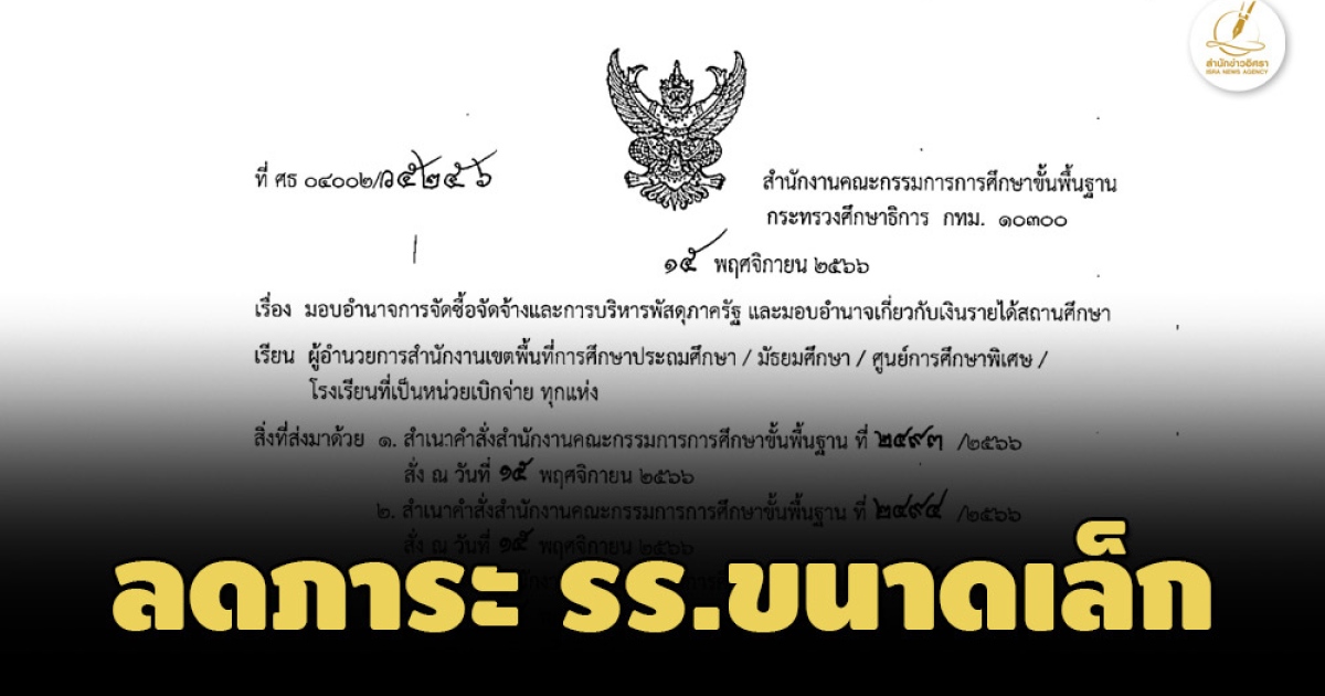 สพฐ.ปรับปรุงคำสั่งมอบอำนาจการจัดซื้อจัดจ้างและการบริหารพัสดุภาครัฐ ให้ผอ.เขตพื้นที่การศึกษา ดำเนินการแทนโรงเรียนขนาดเล็ก เพื่อลดภาระ
