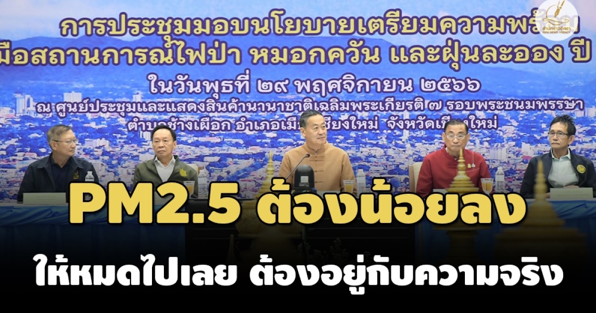 สำนักข่าวอิศรา (www.isranews.org) รายงานว่า วันที่ 29 พฤศจิกายน 2566 ณ ศูนย์ประชุมและแสดงสินค้านานาชาติเฉลิมพระเกียรติ 7 รอบพระชนมพรรษา ตำบลช้างเผือก อำเภอเมืองเชียงใหม่ จังหวัดเชียงใหม่ นายเศรษฐา ทวีสิน นายกรัฐมนตรีและรัฐมนตรีว่าการกระทรวงการคลัง เป็นประธานประชุมมอบนโยบายเตรียมความพร้อมรับมือสถานการณ์ไฟป่า หมอกควัน และฝุ่นละออง ปี 2567 โดยมี พล.ต.อ. พัชรวาท วงษ์สุวรรณ รองนายกรัฐมนตรีและรัฐมนตรีว่าการกระทรวงทรัพยากรธรรมชาติและสิ่งแวดล้อม นายเสริมศักดิ์ พงษ์พานิช รัฐมนตรีว่าการกระทรวงวัฒนธรรม นายเกรียง กัลป์ตินันท์ รัฐมนตรีช่วยว่าการกระทรวงมหาดไทย ผู้ว่าราชการจังหวัดภาคเหนือ 17 จังหวัด ผู้แทนภาคเอกชน ผู้บริหารส่วนท้องถิ่น และผู้แทนภาคประชาชนเข้าร่วมประชุม