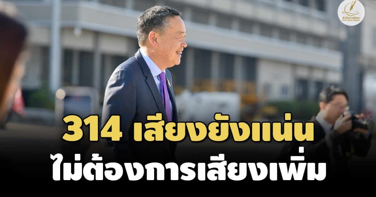 สำนักข่าวอิศรา (www.isranews.org) รายงานว่า วันที่ 14 ธันวาคม 2566 ที่ท่าอากาศยานทหาร กองบิน 6 ดอนเมือง นายเศรษฐา ทวีสิน นายกรัฐมนตรี และ รัฐมนตรีว่าการกระทรวงคลัง ให้สัมภาษณ์เรื่องการเมืองว่า ไม่มีอะไรน่าเป็นห่วง เพราะพรรครัฐบาลมีเสียงรวมกัน 314 เสียง