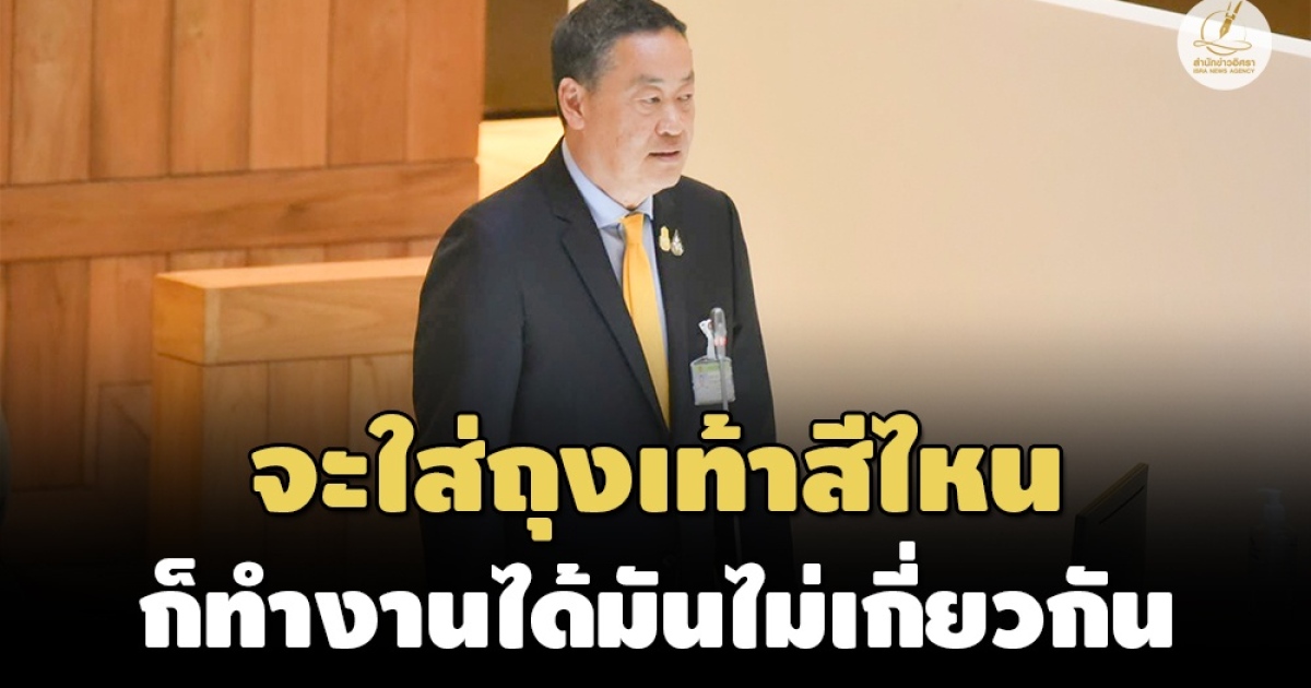“ก็เป็นสีสันไม่เป็นไรครับ เพราะทุกคนก็กู้หมดแหละครับ แต่สำคัญว่ากู้แล้วนำมาทำประโยชน์ให้ประเทศชาติอย่างไรบ้าง ผมมั่นใจในรัฐบาลนี้และเอาประชาชนเป็นที่ตั้ง “ พร้อมกล่าวย้ำว่า ” จะใส่ถุงเท้าสีไหนก็ทำงานได้มันไม่เกี่ยวกัน “ นายกรัฐมนตรีกล่าวในช่วงท้าย