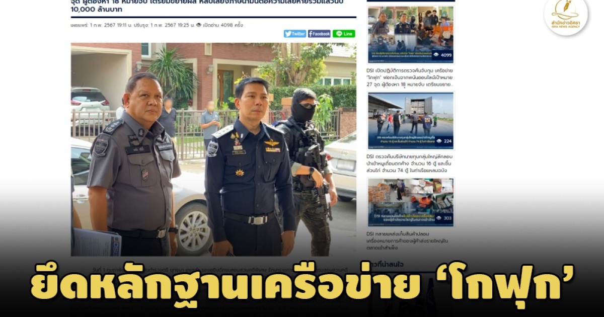 'ดีเอสไอ' ลงพื้นที่ 27 จุด ปราบเครือข่ายฟอกเงินพนันออนไลน์ 'โกฟุก' มูลค่าความเสียหายนับหมื่นล้าน เบื้องต้นยึดหลักฐานรถยนต์หรู ทองรูปพรรณ สินค้าแบรนด์เนมเพียบ
