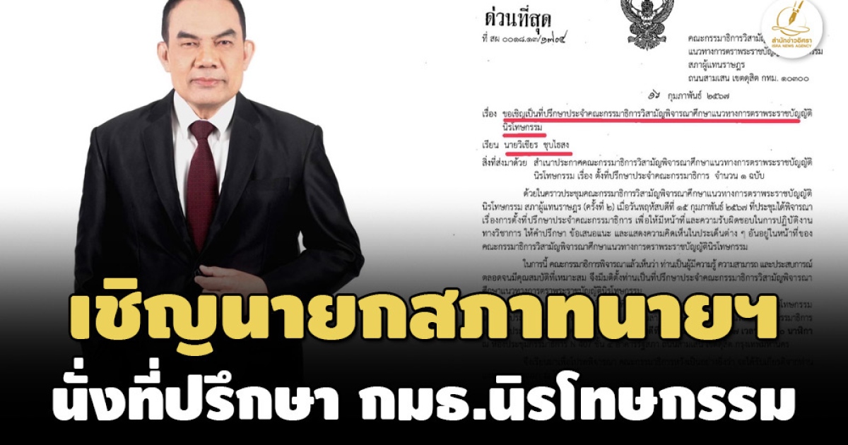 'ชูศักดิ์ ศิรินิล' ปธ.กมธ. นิรโทษกรรมส่งเทียบเชิญ 'วิเชียร ชุบไธสง' นายกสภาทนายฯนั่งที่ปรึกษา กมธ.ถกยกร่างกฎหมายนิรโทษกรรมนัดต่อไป 22 ก.พ.นี้