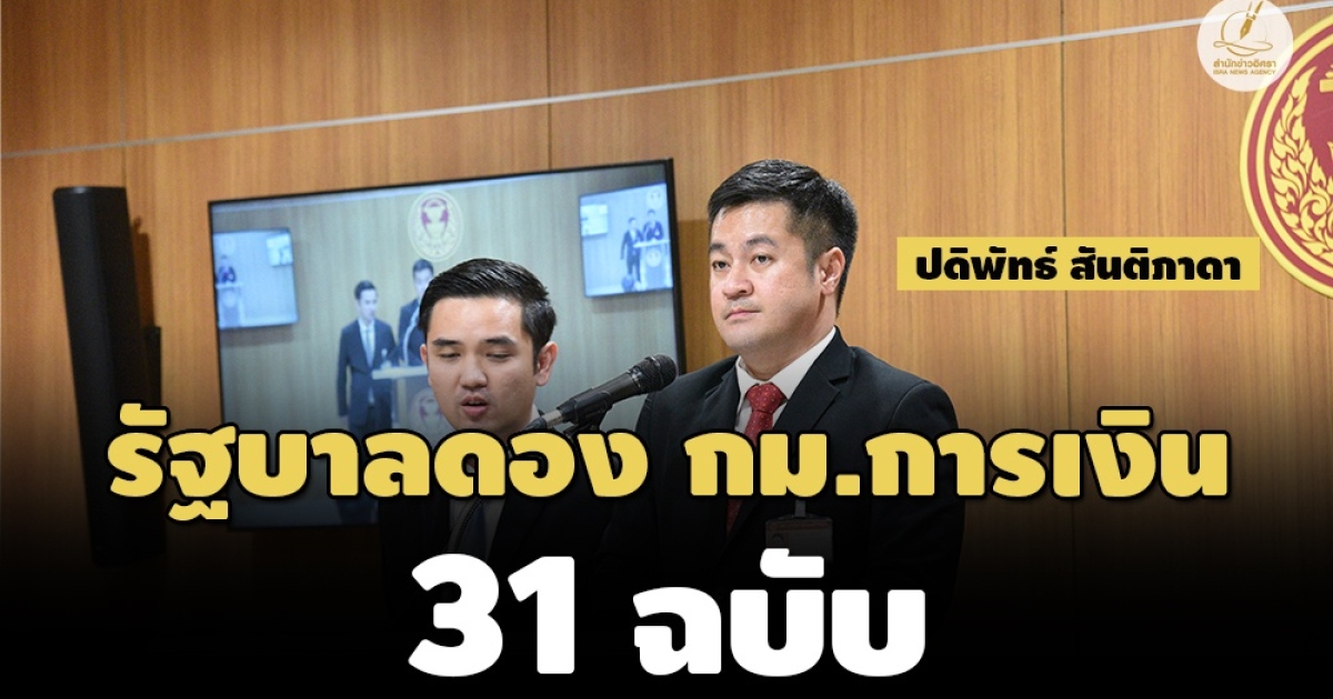 สำนักข่าวอิศรา (www.isranews.org) รายงานว่า วันที่ 29 กุมภาพันธ์ 2567 นายปดิพัทธ์ สันติภาดา รองประธานสภาผู้แทนราษฎรคนที่ 1 กล่าวว่า สถานะของพระราชบัญญัติ (พ.ร.บ.) ที่เกี่ยวข้องกับการเงิน ยังรอนายเศรษฐา ทวีสิน นายกรัฐมนตรีและรัฐมนตรีว่าการกระทรวงการคลัง ลงนามรับรอง มีทั้งหมด 31 ฉบับ