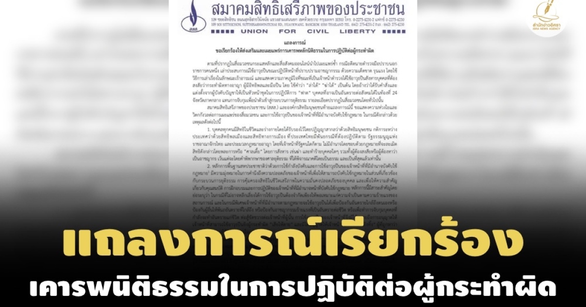 ขอเรียกร้องให้ส่งเสริมและเผยแพร่การเคารพหลักนิติธรรมในการปฏิบัติต่อผู้กระทำผิด