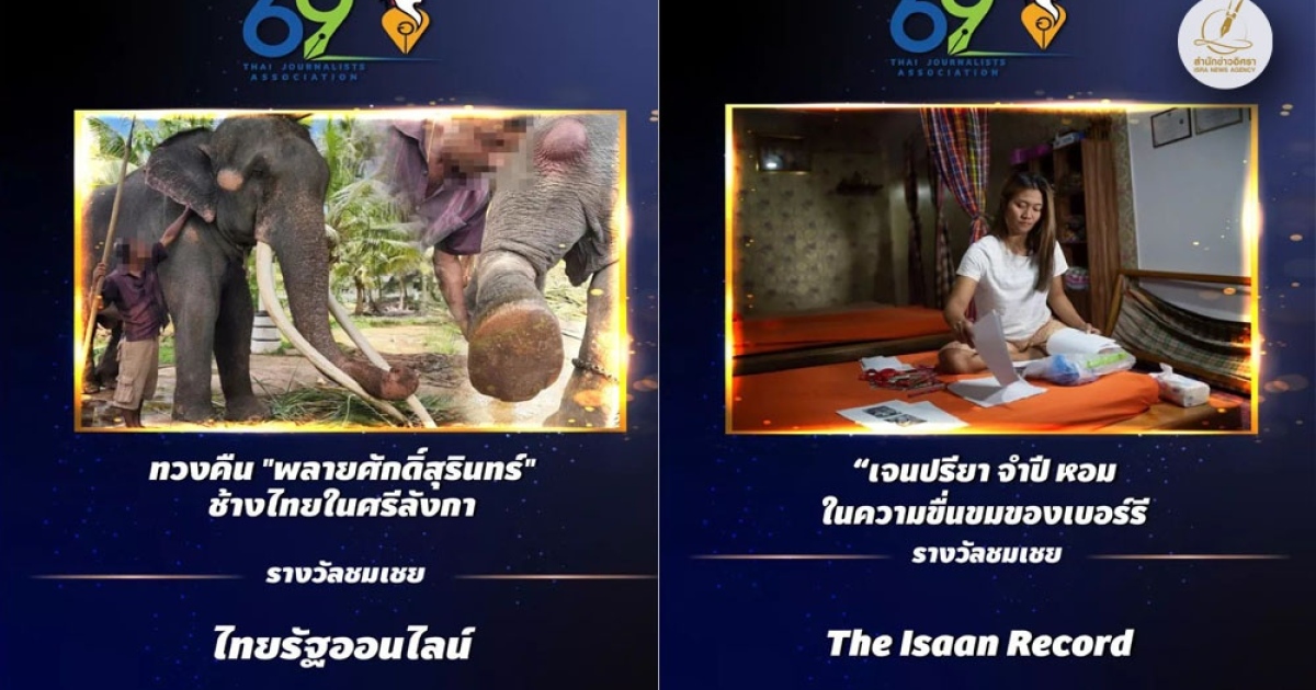 ประกาศรางวัลข่าวอิศราอมันตกุล ปี 2566 สมาคมนักข่าวนักหนังสือพิมพ์แห่งประเทศไทย 'ทวงคืน พลายศักดิ์สุรินทร์ ช้างไทยในศรีลังกา' ไทยรัฐ - 'เจนปรียา จําปี หอมฯ' The Isaan Record คว้าชมเชยข่าวออนไลน์ ส่วน เดลินิวส์ ได้ 2 รางวัลชมเชยหนังสือพิมพ์ - ไทยพีบีเอส ชนะภาพยอดเยี่ยม 'เก่ากำลังไป ใหม่มาแล้ว'