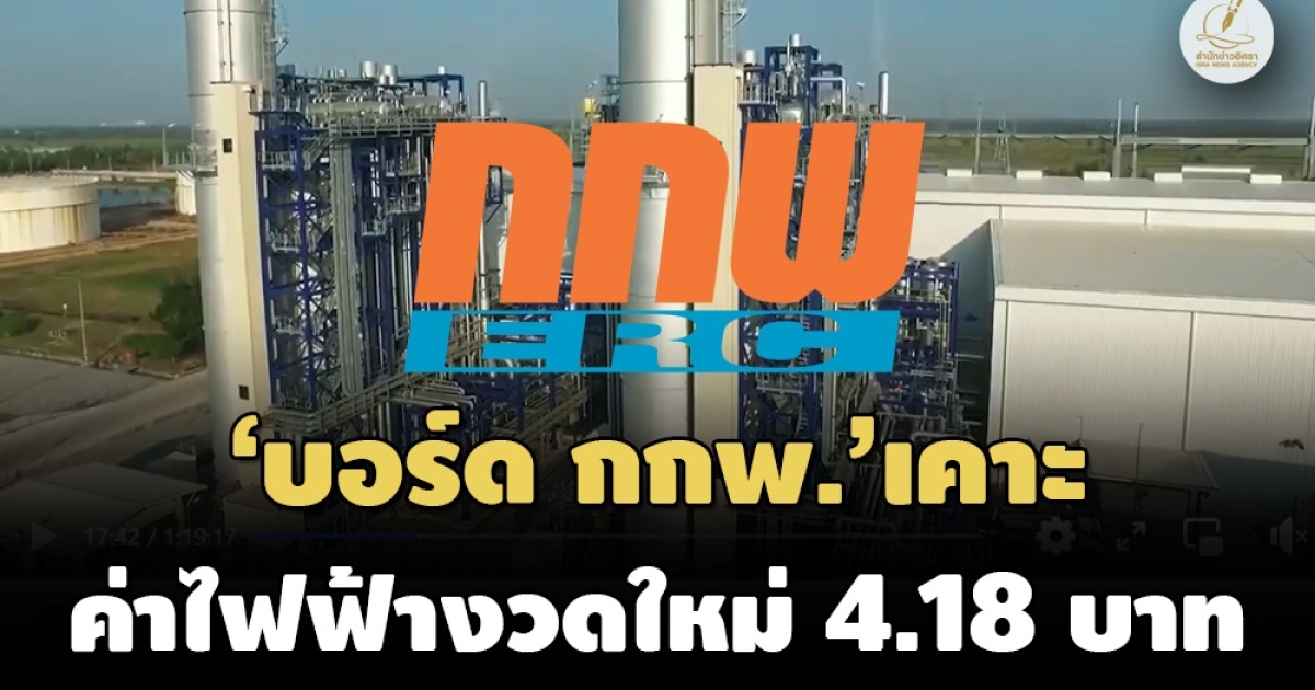 กกพ. ชี้ค่าไฟงวด พ.ค. - ส.ค. 67 ที่ 4.18 ต่อหน่วยตอบโจทย์ทุกฝ่าย