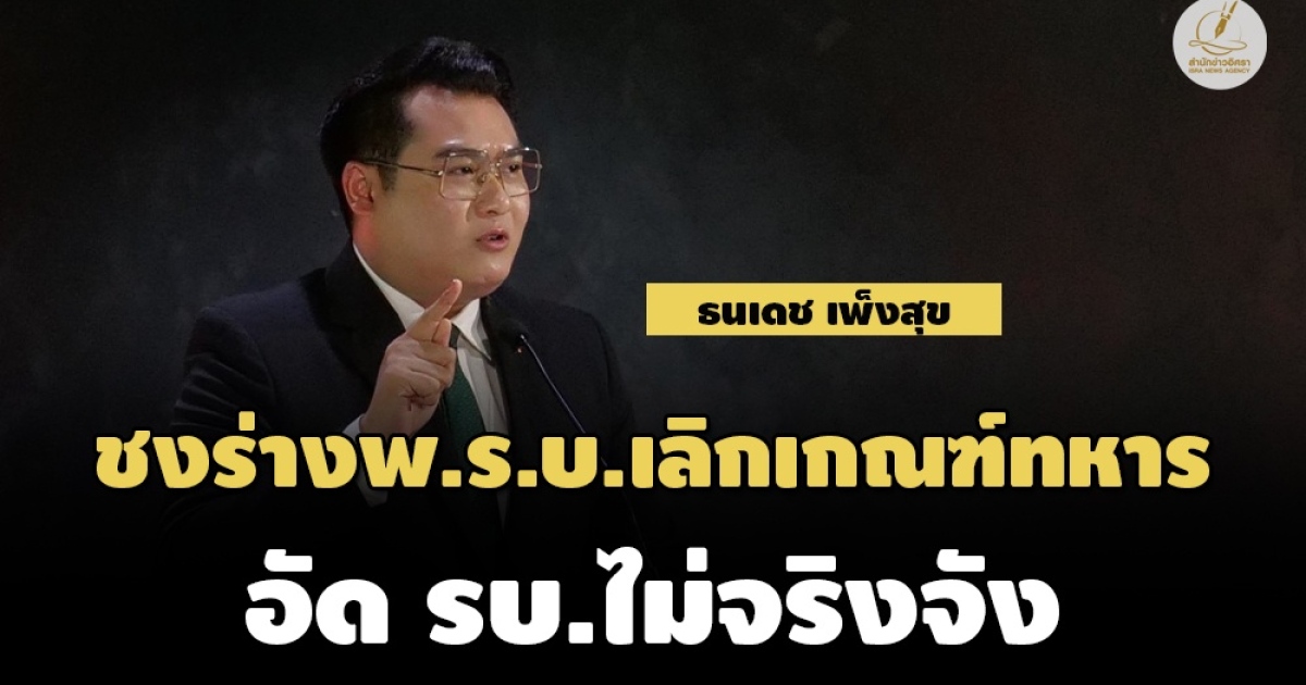 ‘ธนเดช’ สส.ก้าวไกล แถลงเตรียมเสนอร่างพ.ร.บ.เลิกเกณฑ์ทหารฉบับใหม่ หลังฉบับก่อนถูกดองเพราะเป็นร่างการเงิน ตำหนิรัฐบาลเอาทางเลือกเลิกเกณฑ์แบบปีต่อปี และเป้าหมายการปรับลดไม่ชัด ชี้ร่างของก้าวไกลจะทำให้พลทหารเหลือ 5-6 หมื่นคน/ปี