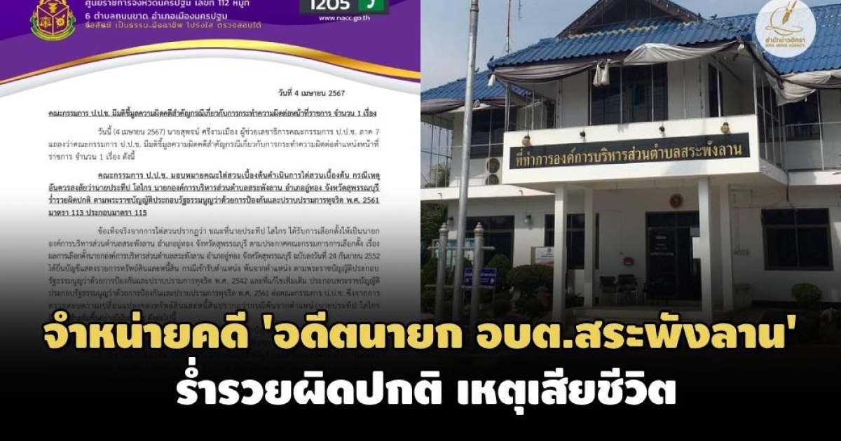 ป.ป.ช.จำหน่ายคดี 'ประทีป โสไกร' อดีตนายก อบต.สระพังลาน ร่ำรวยผิดปกติ เหตุเสียชีวิต ส่วนผู้ที่เกี่ยวข้องอื่นๆ ให้ กกต.ดำเนินการต่อ เพราะอาจเข้าข่ายเป็นความผิดตามมาตรา 57 ประกอบมาตรา 118 ได้ร่วมกันมอบเงินให้เพื่อให้จูงใจผู้สมัครรับเลือกตั้งนายก อบต.สระพังลาน