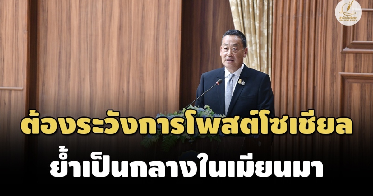 นายกฯปาฐกถาเปิดหลักสูตร ‘วปอ.บอ.’ เตือนผู้เข้าอบรมที่มาจากหลายวงการ ระวังการแสดงออกผ่านโซเชียลมีเดีย เพราะถูกประชาชนจับตามอง ก่อนย้ำเรื่องเมียนมา ไทยเป็นกลาง ส่วนเศรษฐกิจ ‘แลนด์บริดจ์’ คืออาวุธสำคัญ ส่วนทหารเกณฑ์จะปรับลดแน่นอน