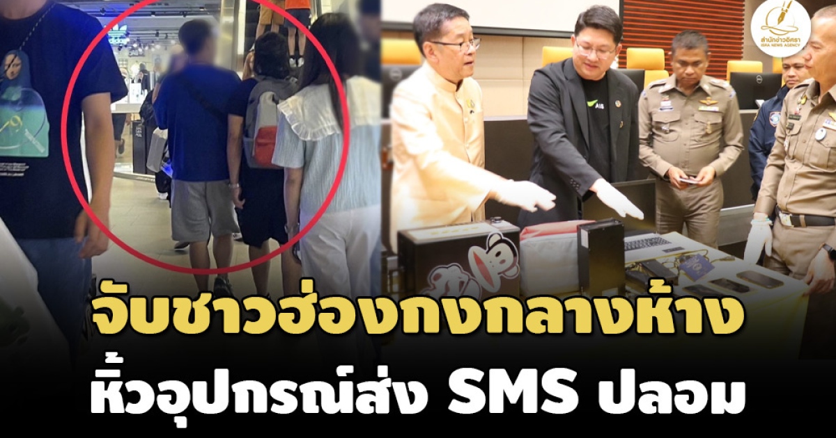 ตำรวจจับชาวฮ่องกง แฝงตัวเป็น นทท. แบกเครื่องส่งสัญญาณ ส่ง SMS ปลอมเป็นค่ายมือถือ หลอกดูดเงิน กลางห้าง พบเข้าไทยก่อเหตุตามคำสั่งนายทุนมาเลเซีย