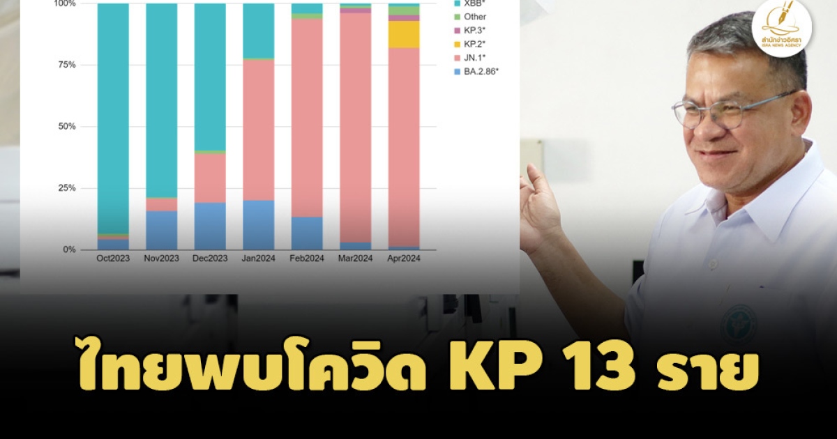 กรมวิทยาศาสตร์การแพทย์เผยไทยพบโควิด KP สายพันธุ์ย่อยของโอไมครอน JN.1 จำนวน 13 ราย ยังไม่มีหลักฐานความรุนแรง ย้ำ JN.1ยังเป็นสายพันธุ์หลักที่ระบาด