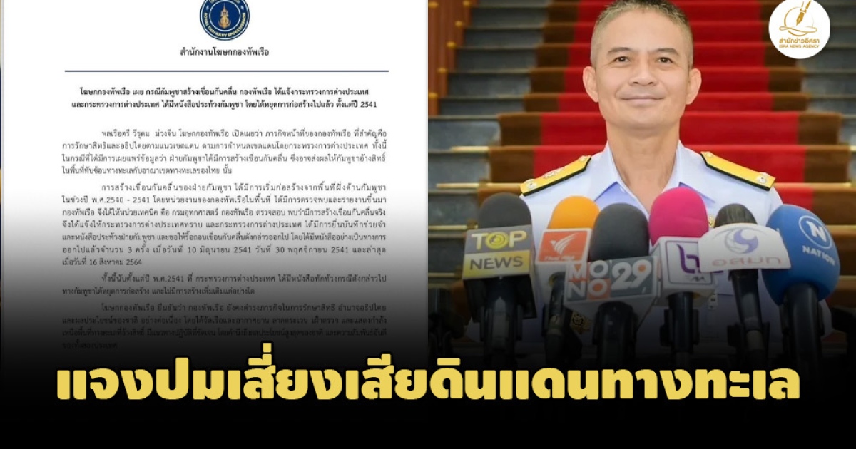 กองทัพเรือแจงกรณีกัมพูชาสร้างเขื่อนกันคลื่น เผยแจ้งกระทรวงการต่างประเทศ ส่งหนังสือท้วงแล้ว ชี้หยุดการก่อสร้าง ตั้งแต่ปี 2541