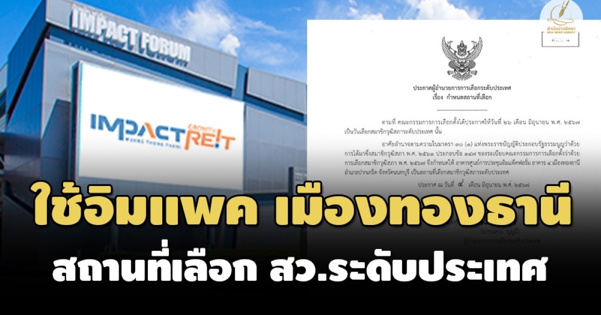 กกต.ประกาศสถานที่คัดเลือก สว.รอบระดับประเทศ ใช้อิมแพค เมืองทองธานี ส่วนการเลือกระดับจังหวัด กทม.ใช้ ร.ร.เซ็นทารา ศูนย์ราชการแจ้งวัฒนะ