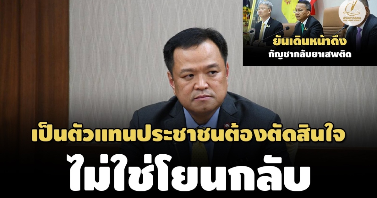 “การปลดล็อคพืชสมุนไพรกัญชานำออกจากความเป็นยาเสพติด คือการคืนสิทธิในการเข้าถึงให้ประชาชน แล้วกำกับควบคุมการใช้งานด้วยกฎหมาย แต่การนำกลับเป็นยาเสพติดคือการริบสิทธิ์นั้นทั้งหมด แล้วค่อยๆออกประกาศให้บางคนขออนุญาตเข้าถึงได้ โอกาสในการใช้ประโยชน์จะต่างกัน เรื่องนี้เป็นเรื่องที่มีความละเอียดลึกซึ้งและต้องพิจารณากันหลายมิติ” หัวหน้าพรรคภูมิใจไทยและอดีตรมว.สาธารณสุขกล่าว