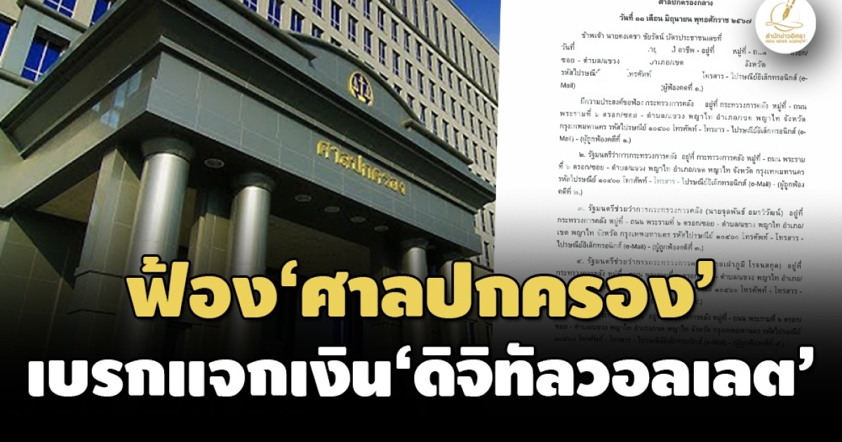 สำนักข่าวอิศรา (www.isranews.org) รายงานว่า เมื่อวันที่ 11 มิ.ย.ที่ผ่านมา นายคงเดชา ชัยรัตน์ (ผู้ฟ้องคดี) ได้ยื่นฟ้องกระทรวงการคลัง กับพวกรวม 5 คน (ผู้ถูกฟ้องคดีทั้งห้า) ต่อศาลปกครองกลาง เพื่อขอให้ศาลปกครองมีคำสั่งห้ามมิให้ผู้ถูกฟ้องคดีทั้งห้า กระทำการโดยนำมาตรการทางการคลัง ด้วยการแจกเงินดิจิทัล 10,000 บาท ที่ไม่ชอบด้วยรัฐธรรมนูญและกฎหมาย มาดำเนินการ