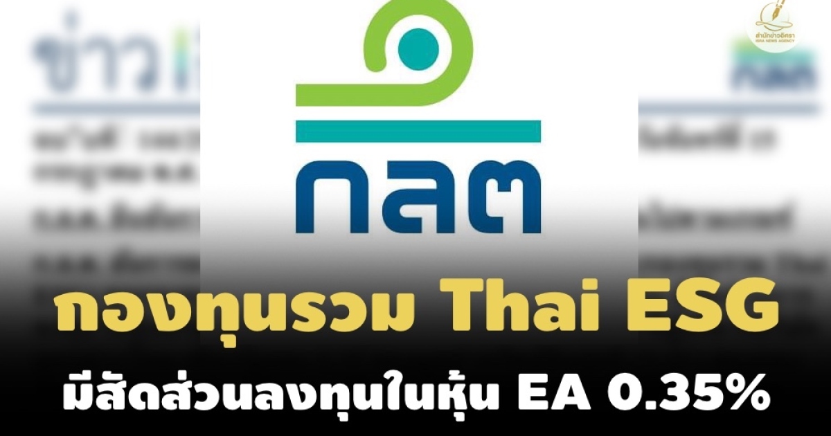 ก.ล.ต. ยืนยันกองทุนรวม Thai ESG ยังเป็นไปตามเกณฑ์กระจายการลงทุน-มีสัดส่วนลงทุนในหุ้น บริษัท EA ที่ผู้บริหารบริษัทถูกกล่าวโทษ 0.35%