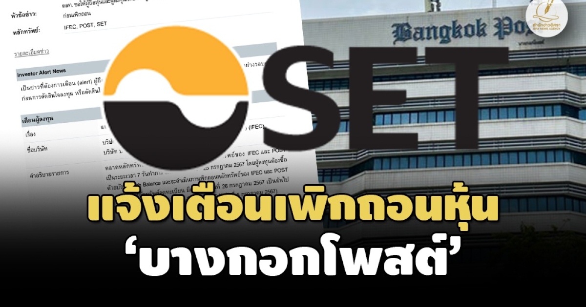 รายงานข่าวแจ้งว่า เมื่อวันที่ 5 ก.ค.2567 ตลท.ประกาศเพิกถอนหลักทรัพย์ของ บมจ.บางกอก โพสต์ (POST) จากการเป็นหลักทรัพย์จดทะเบียน เนื่องจากบริษัทดังกล่าวไม่สามารถดำเนินการเพื่อให้เหตุแห่งการเพิกถอนหมดไปหรือให้มีคุณสมบัติเพื่อกลับมาซื้อขายได้ภายในระยะเวลาที่ตลาดหลักทรัพย์ฯกำหนด อันเป็นเหตุเพิกถอนตามข้อบังคับตลาดหลักทรัพย์ฯ เรื่อง การเพิกถอนหลักทรัพย์จดทะเบียน พ.ศ.2542