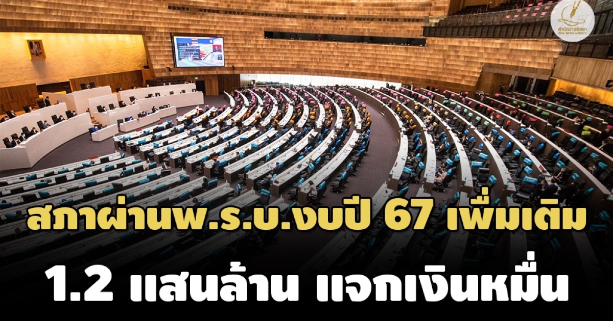 สภาฯ ผ่านร่างพ.ร.บ.งบปี 67 เพิ่มเติม 1.22 แสนล้านบาท เพื่อใช้ในโครงการดิจิทัลวอลเลตแล้ว 297 ต่อ 164 เสียง