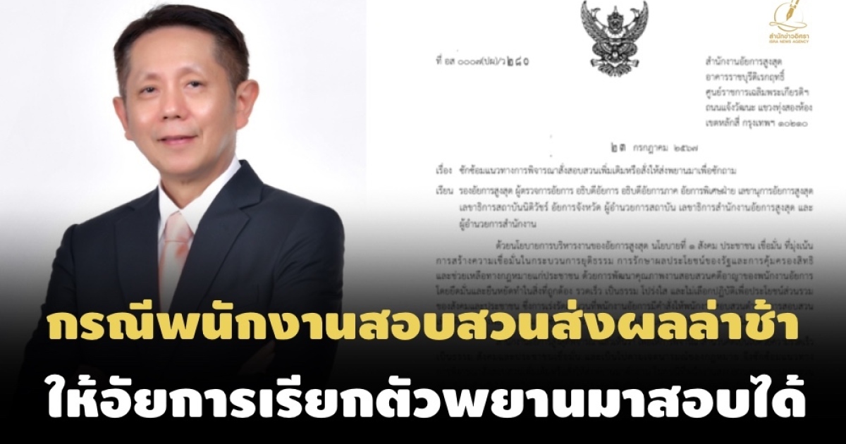อัยการสูงสุด ออกระเบียบกรณีพนักงานสอบสวนส่งผลสอบล่าช้า-ประเด็นไม่ชัดแจ้ง ให้อัยการเรียกตัวพยานมาสอบได้