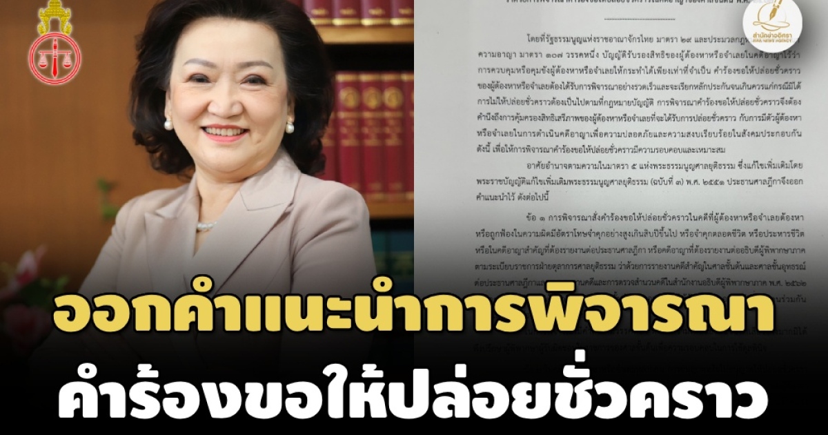 สำนักข่าวอิศรา (www.isranews.org) รายงานว่า เมื่อวันที่ 30 ก.ค. 2567 นางอโนชา ชีวิตโสภณ ประธานศาลฎีกา ออกคำแนะนำว่าด้วยการพิจารณาคำร้องขอให้ปล่อยชั่วคราวในคดีอาญาของศาลชั้นต้น พ.ศ. 2567 6 ข้อ มีรายละเอียด ดังนี้