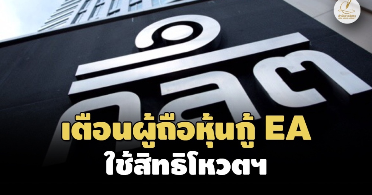 เมื่อวันที่ 6 ส.ค. สำนักงานคณะกรรมการกำกับหลักทรัพย์และตลาดหลักทรัพย์ (ก.ล.ต.) ขอให้ผู้ถือหุ้นกู้ EA248A ใช้สิทธิในการประชุมผู้ถือหุ้นกู้ ศึกษาข้อมูล ซักถามผู้ออกหรือผู้แทนผู้ถือหุ้นกู้ เพื่อให้ได้ข้อมูลครบถ้วนและเพียงพอต่อการตัดสินใจลงมติ ในวันที่ 9 ส.ค.2567